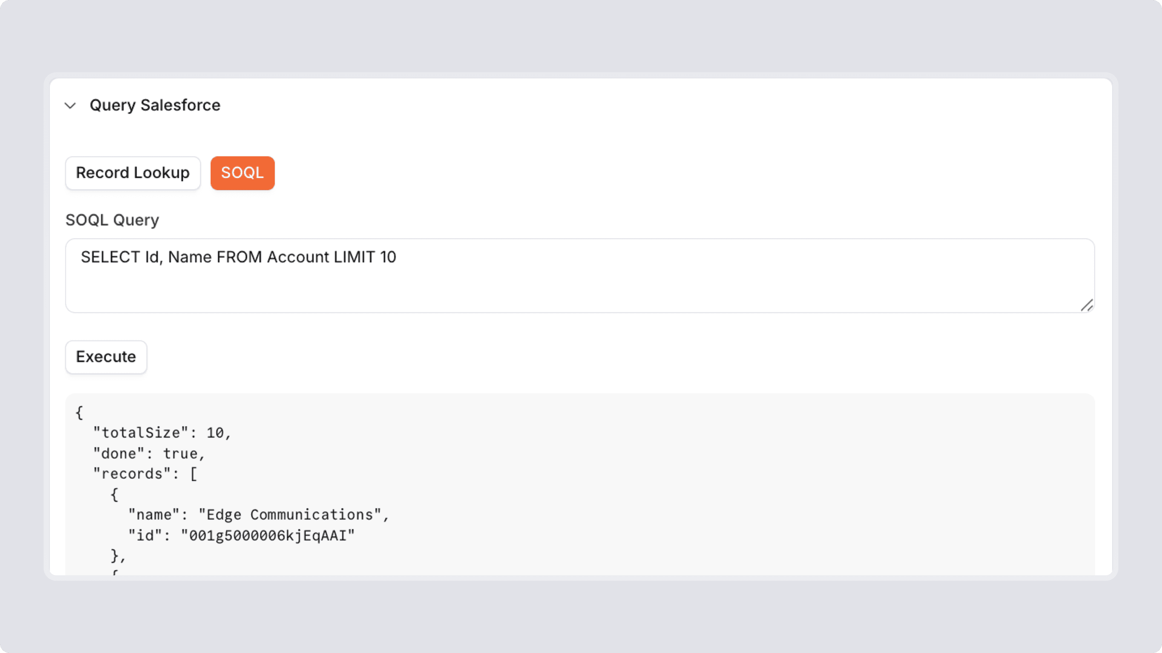 You can now choose to use a raw Salesforce Query (SOQL) or to query Salesforce data based on an existing sync section for faster advanced integration setup.
