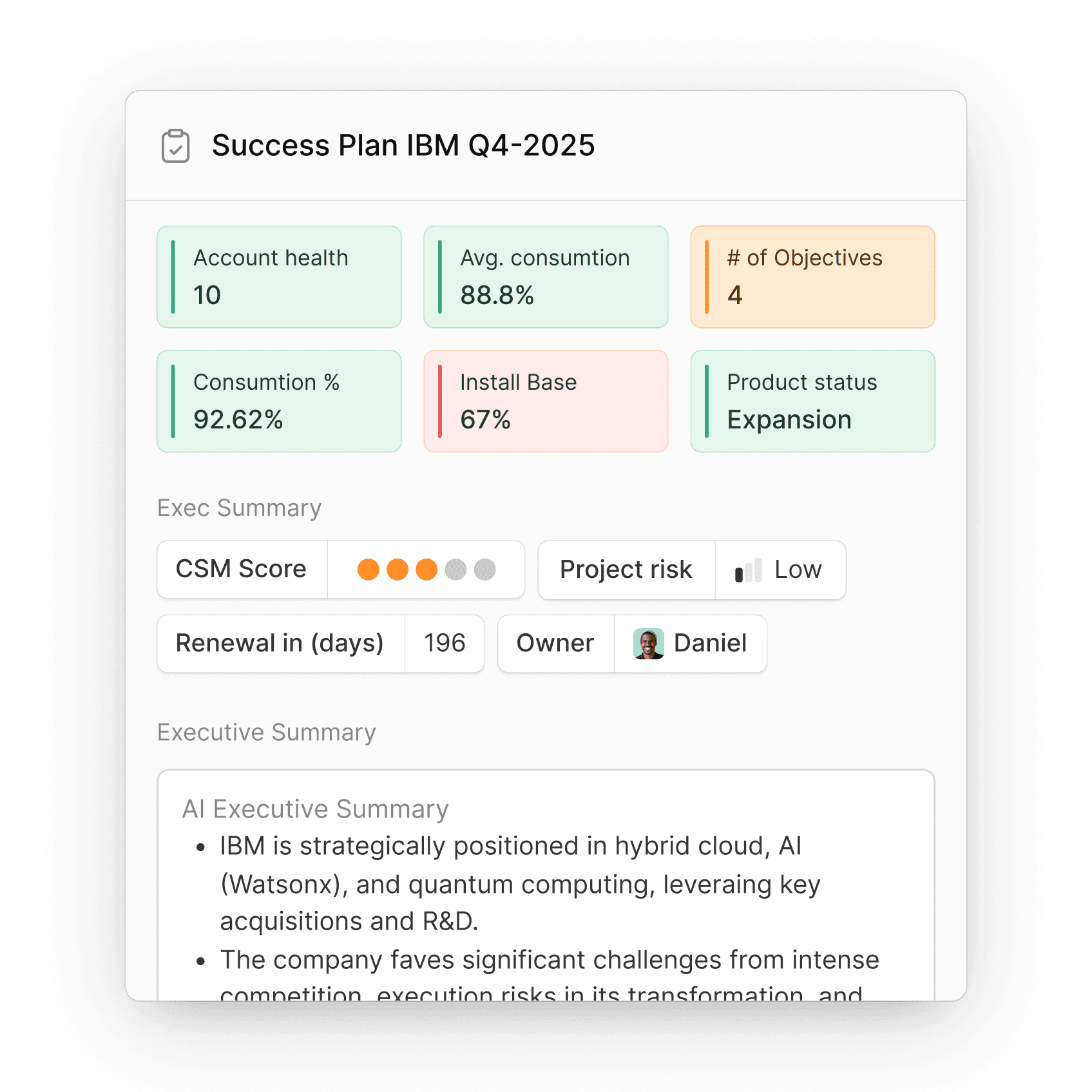 Kick-off renewal processes 90 days before contract end, or initiate churn risk mitigation when health scores drop—ensuring your team consistently executes proven playbooks without manually creating tasks or chasing timelines.